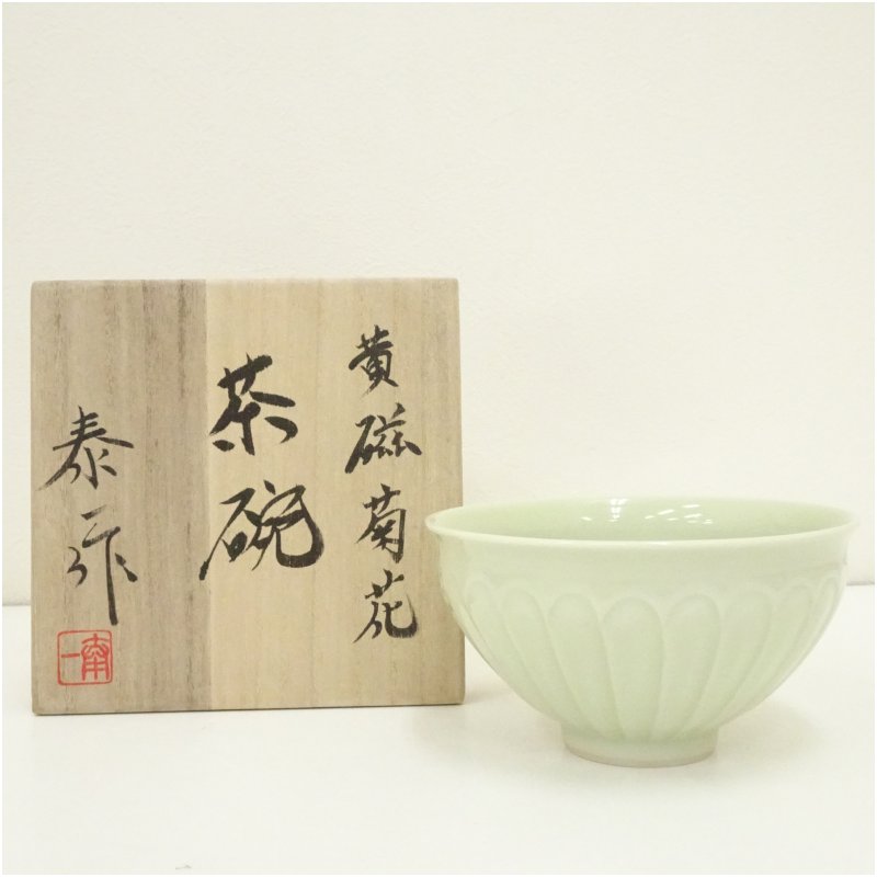 京焼 加藤泰一造 黄磁菊花茶碗(共箱)