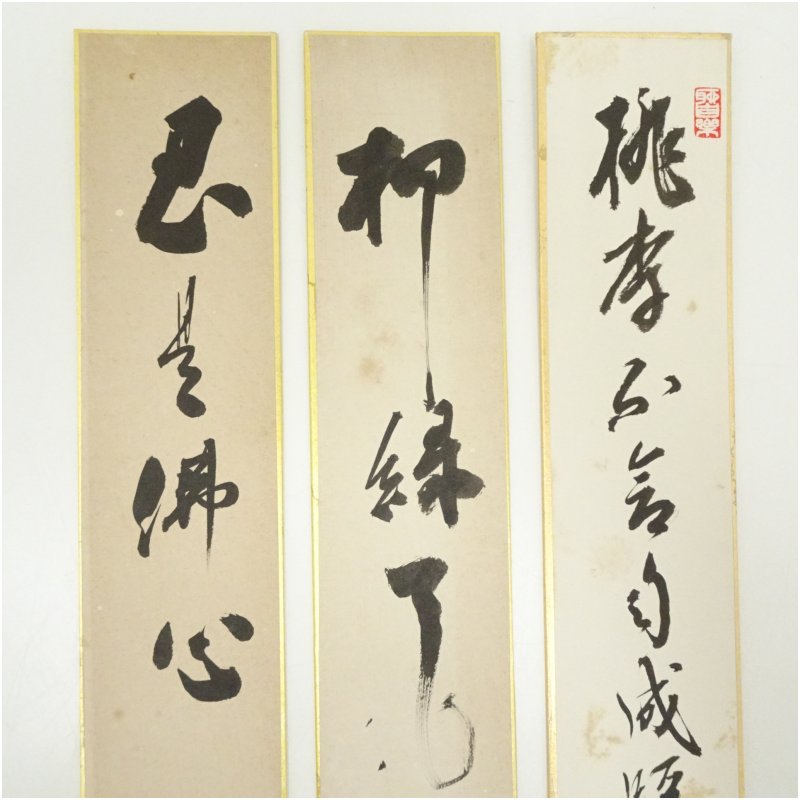 谷本巖(願旭)筆 「忍是佛心」など 肉筆短冊3枚 [13-250908c-055a]