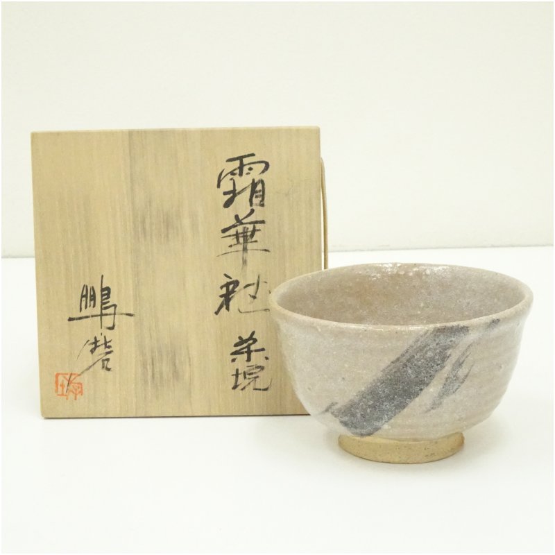 鵬窯 青木鵬磨造 霜華釉茶碗(共箱)