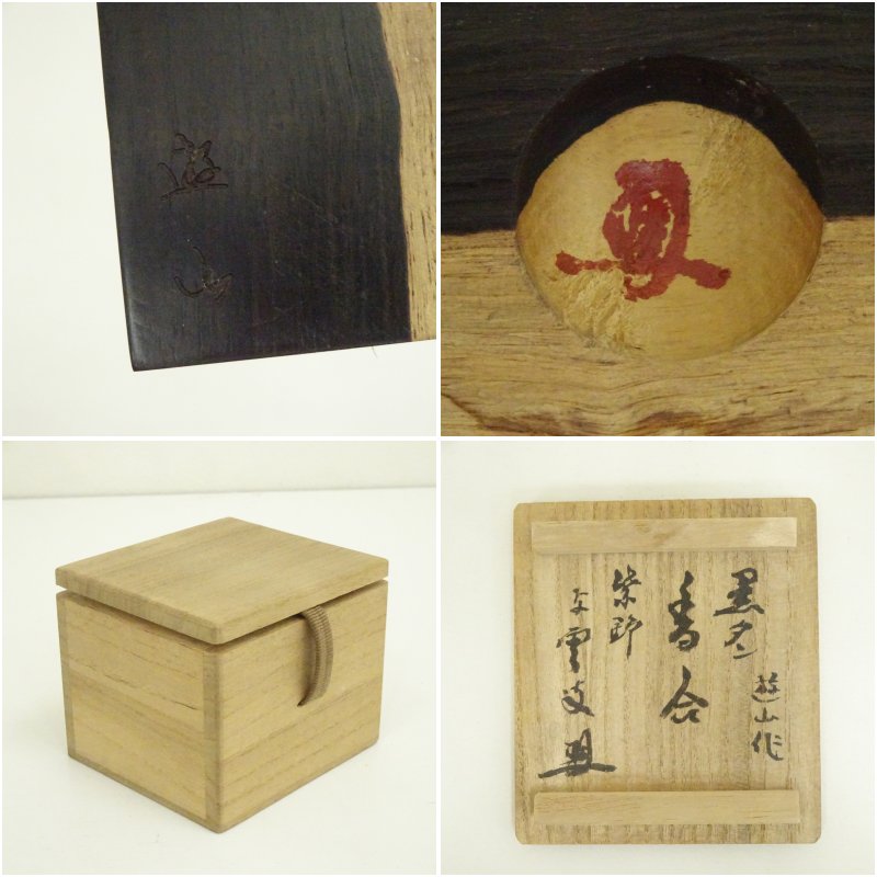 西垣遊山造 黒檀香合(大徳寺 三重野与雲(荊山)花押・書付)(共箱) [13-250516c-016a]