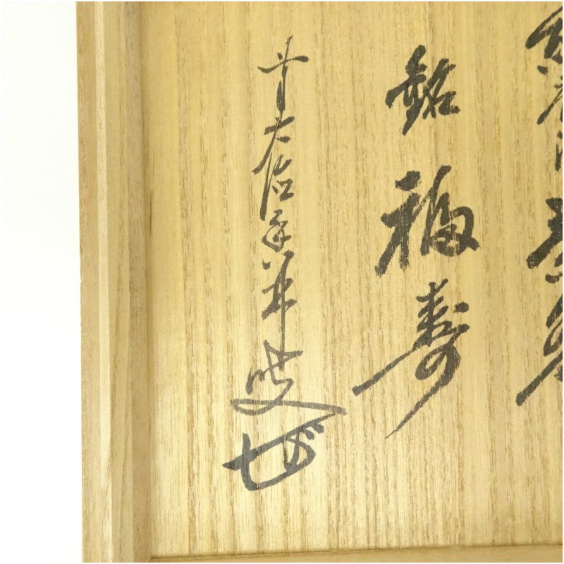 萬古焼 松古窯 佐久間芳丘造 絵唐津茶碗(銘:福寿)(前大徳 大橋香林書付)(共箱)