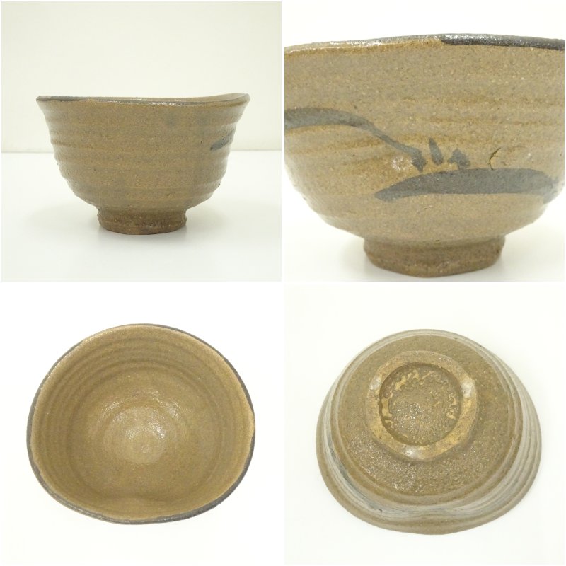 萬古焼 松古窯 佐久間芳丘造 絵唐津茶碗(銘:福寿)(前大徳 大橋香林書付)(共箱) [12-250908c-079a]