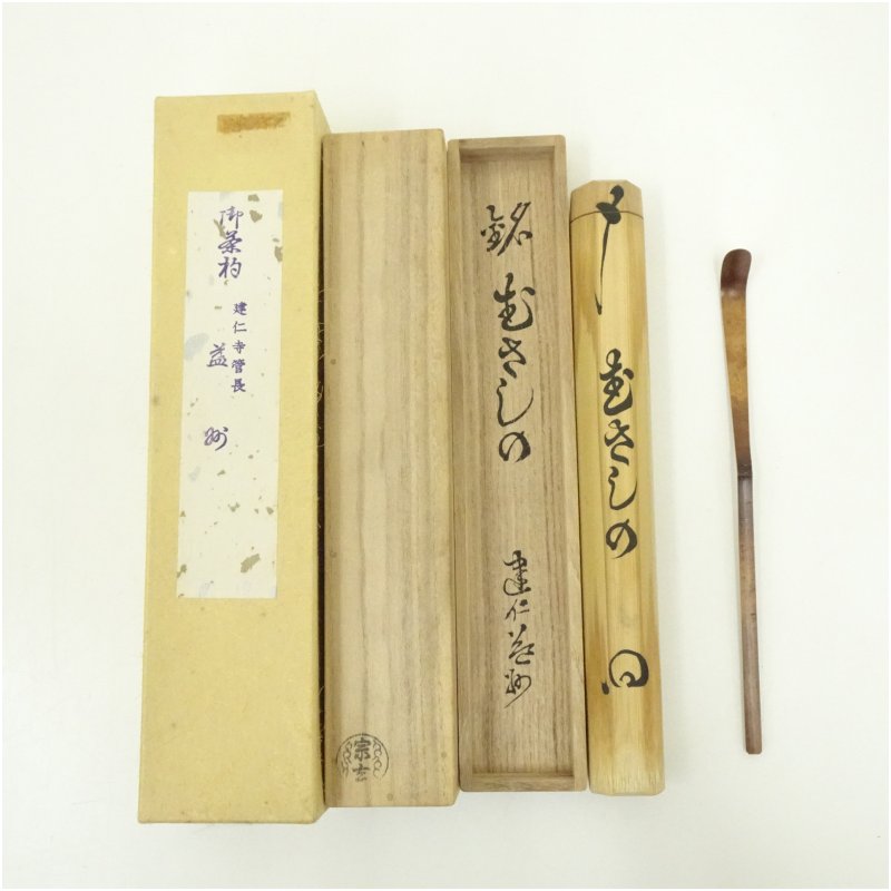 宗玄造 竹茶杓(銘:むさしの)(建仁寺 竹田益州書付)(共箱)