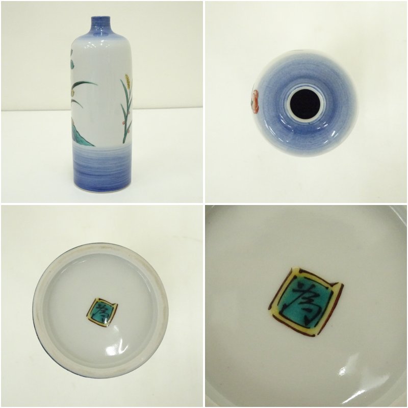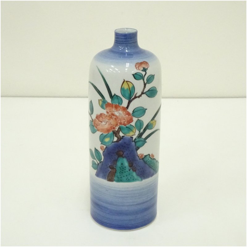 九谷焼 三代 三ツ井為吉造 色絵牡丹花入(共箱)