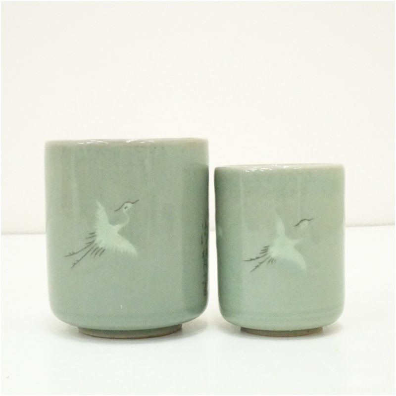 申相浩造 高麗青磁 夫婦湯呑一対(共箱)