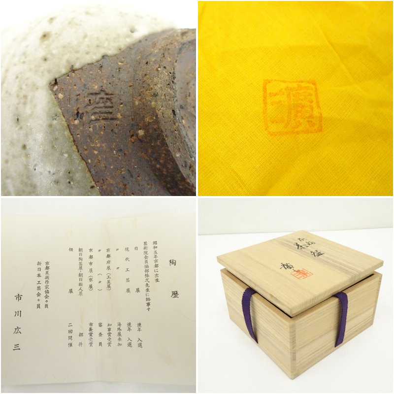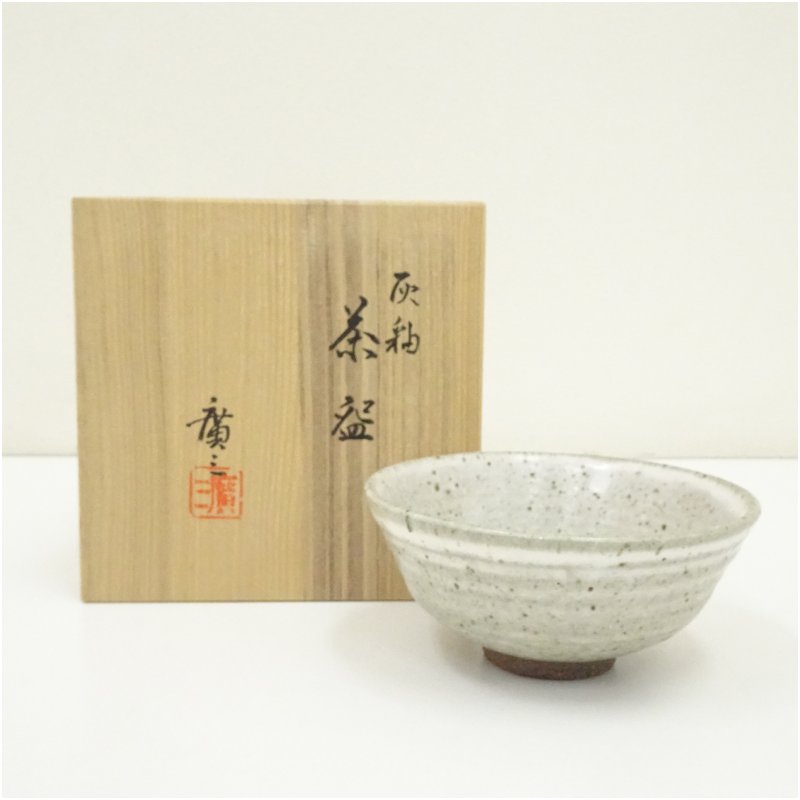 市川廣三造 灰釉茶碗(共箱)