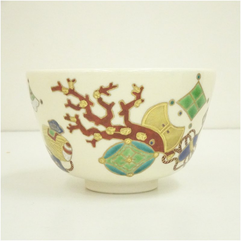 京焼 上山善峰造 仁清写宝尽くし茶碗(共箱)