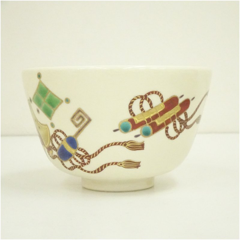 京焼 上山善峰造 仁清写宝尽くし茶碗(共箱) [13-250516c-017a]