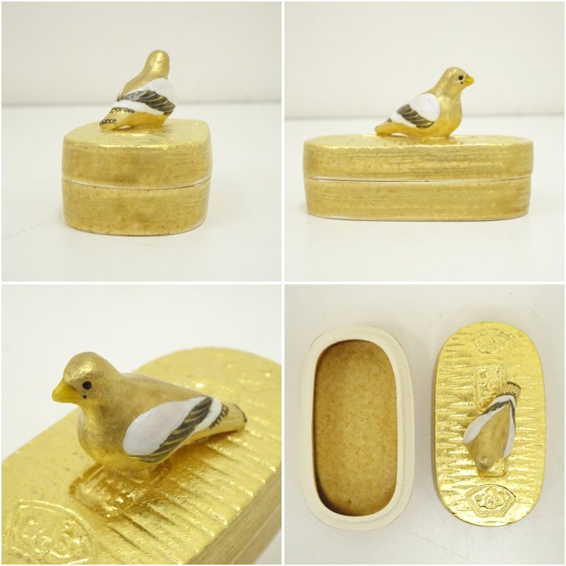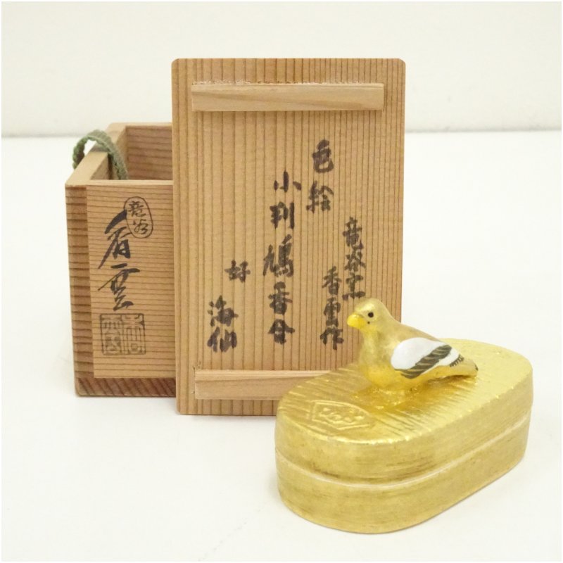 京焼 竜谷窯 宮川香雲造 小判鳩香合(裏千家 井口海仙花押)(共箱) [13-250910c-018a]