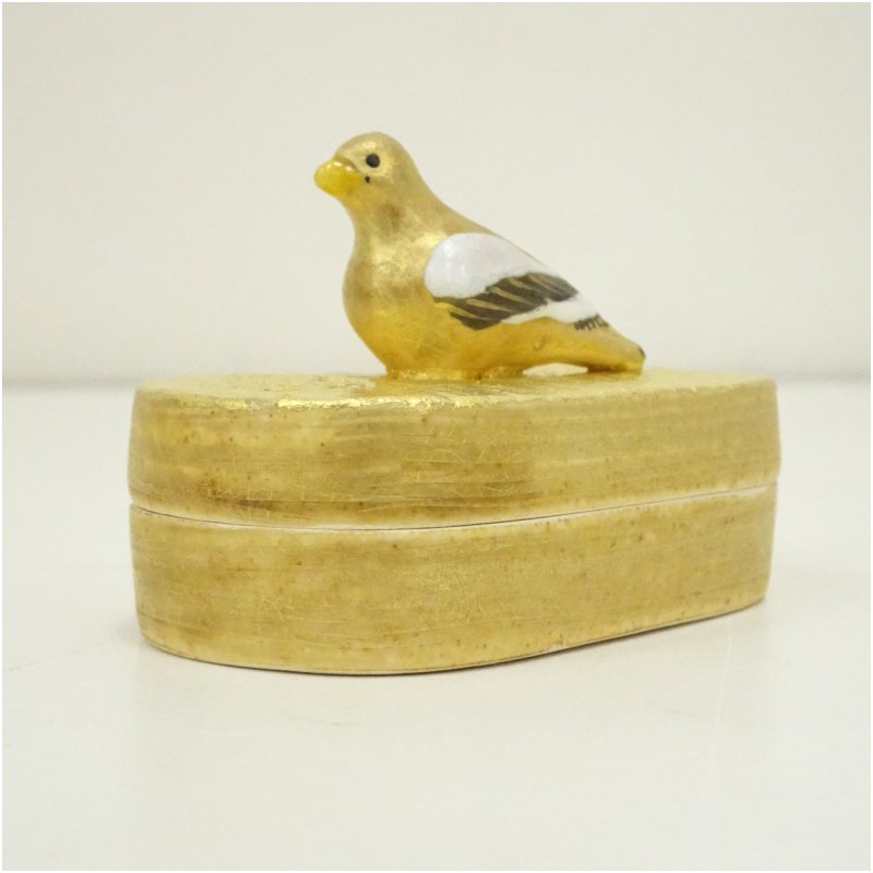 京焼 竜谷窯 宮川香雲造 小判鳩香合(裏千家 井口海仙花押)(共箱)