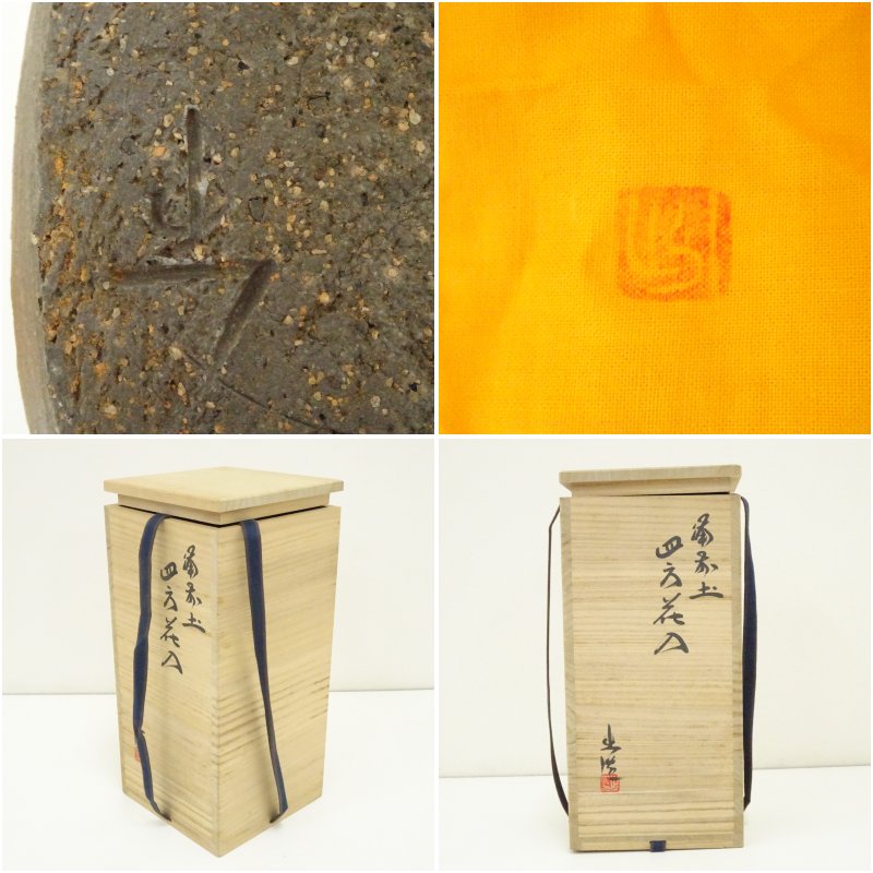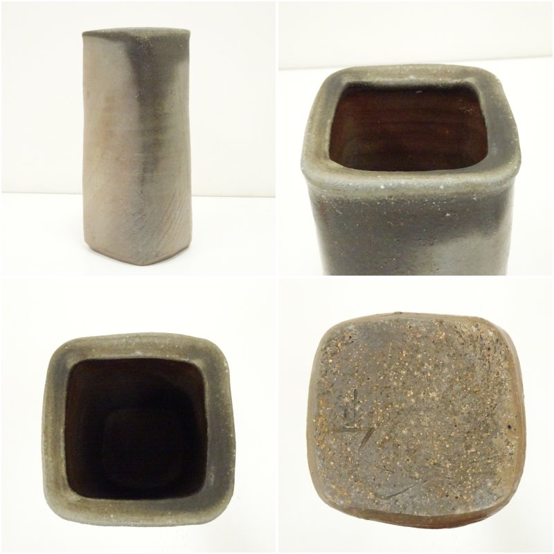 備前焼 山本出造 ブルゴーニュ土四方花入(共箱) [13-250910c-027a]