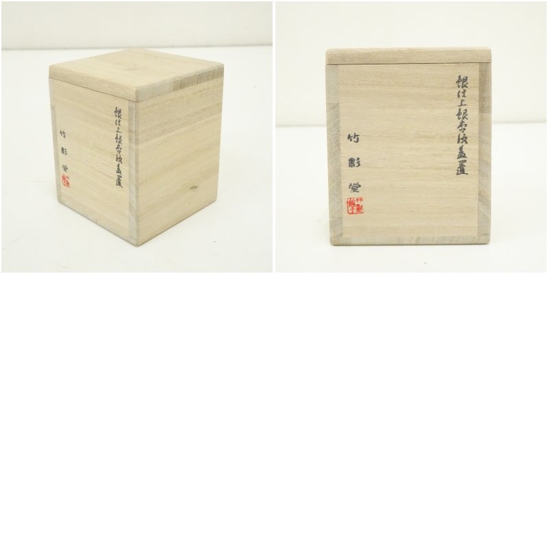竹影堂造 銀仕上銀杏紋蓋置(共箱)