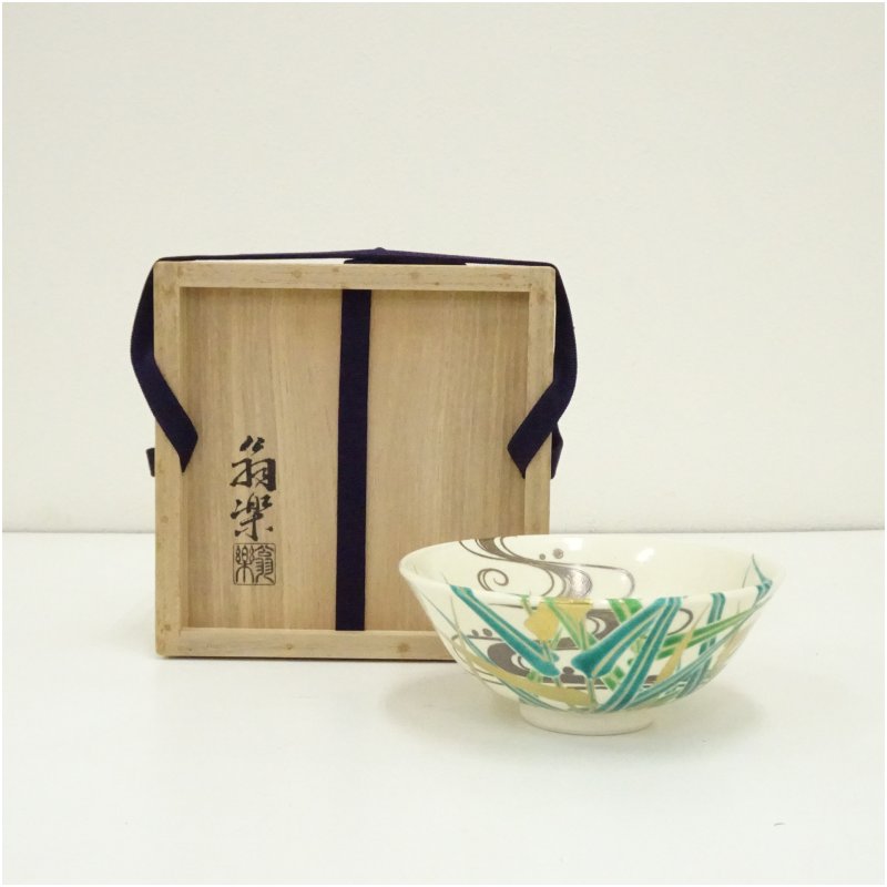 京焼 木全翁楽造 芦に銀水平茶碗(共箱)