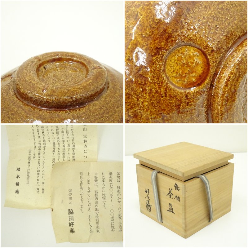 脇田好楽造 飴釉茶碗(銘:庵の友)(前大徳 福本積應書付)(共箱) [12-250911c-006a]