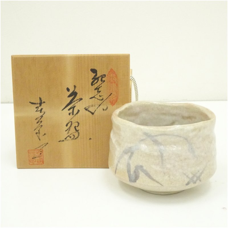 中島春草造 紅志野茶碗(共箱)