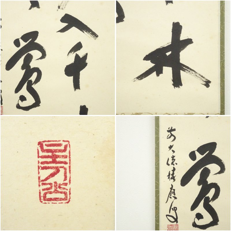 前大徳 福本積應筆 「春入千林處々鶯」一行書 肉筆紙本掛軸(共箱) [09-250911c-018a]