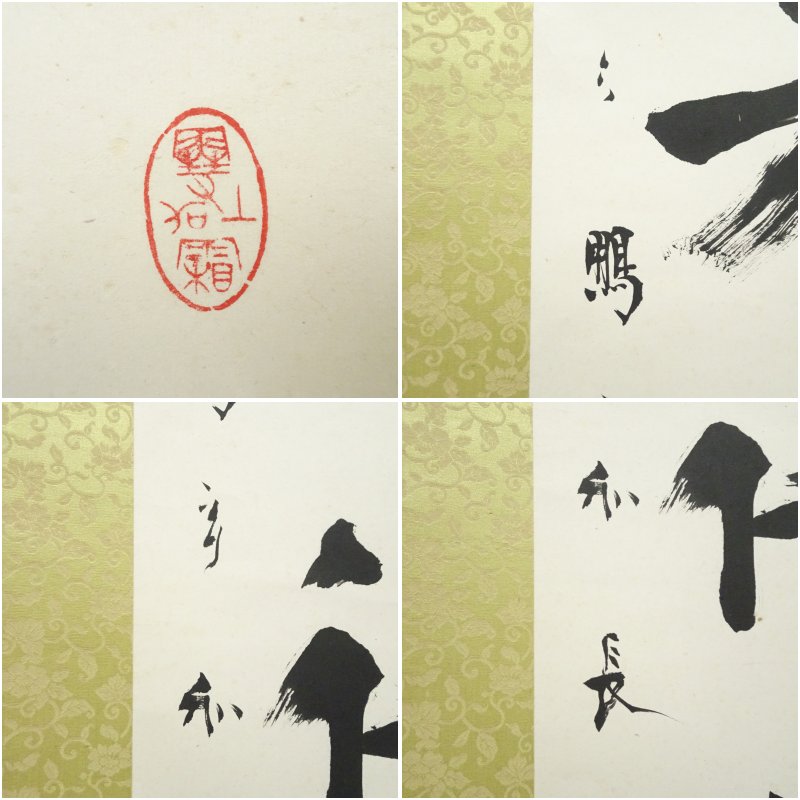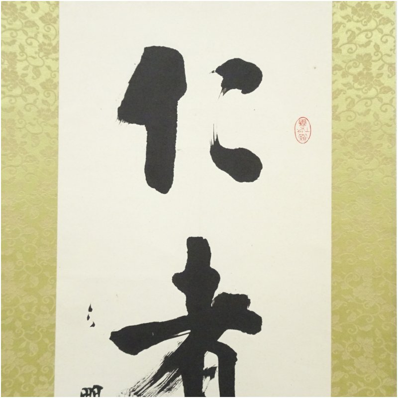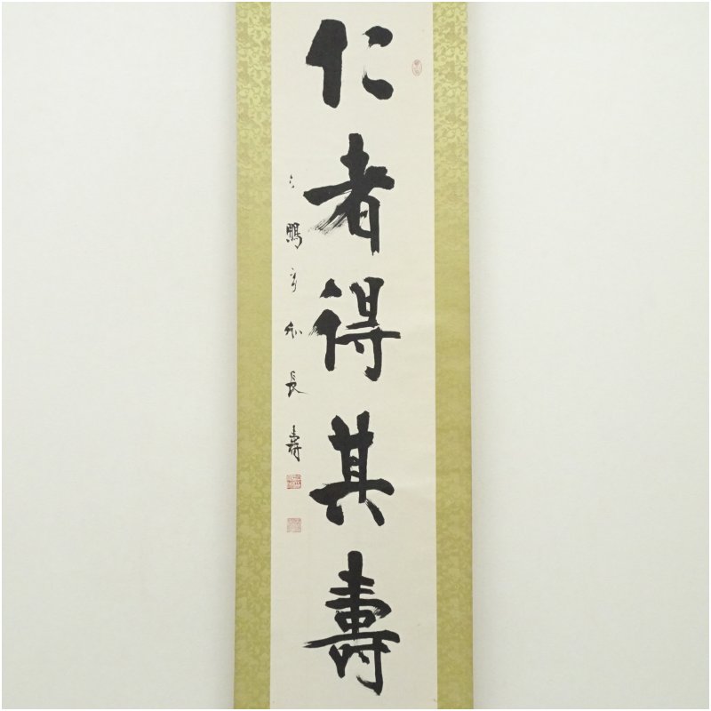 沖六鵬筆 「仁者得其寿」一行書 肉筆紙本掛軸(保護箱) [09-250911c-020a]