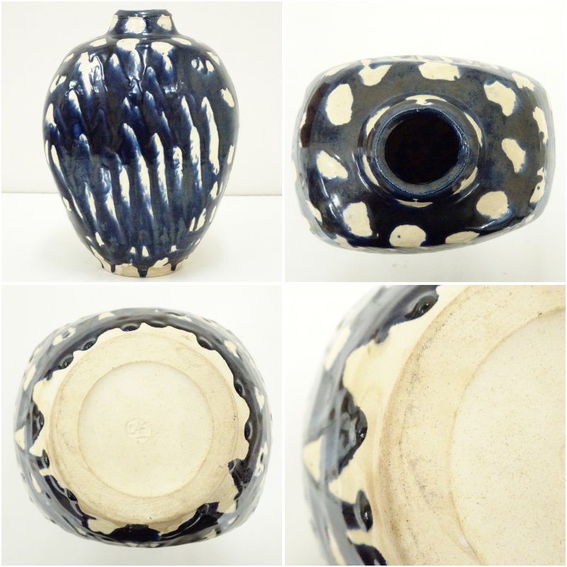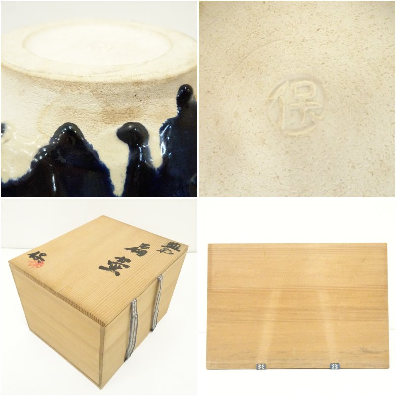 清水保孝造 藍彩扁壷(共箱) [13-250911c-025a]