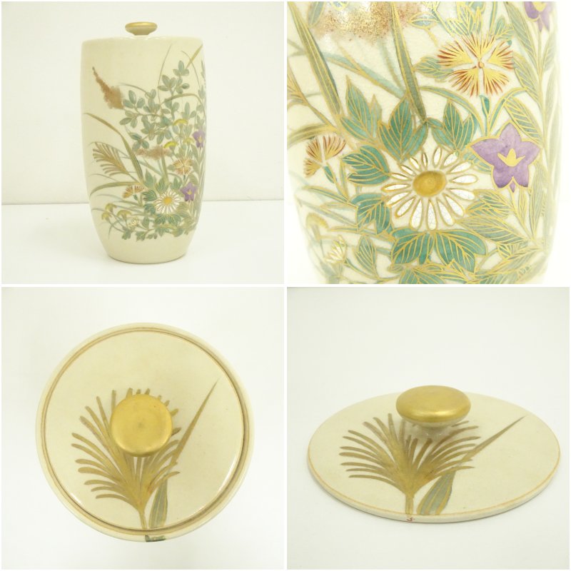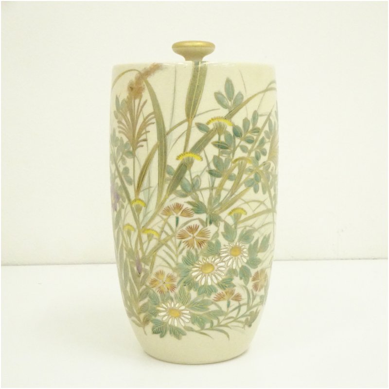 京焼 清閑寺窯 杉田祥平造 色絵仁清秋草画細水指(共箱) [13-250516c-018a]