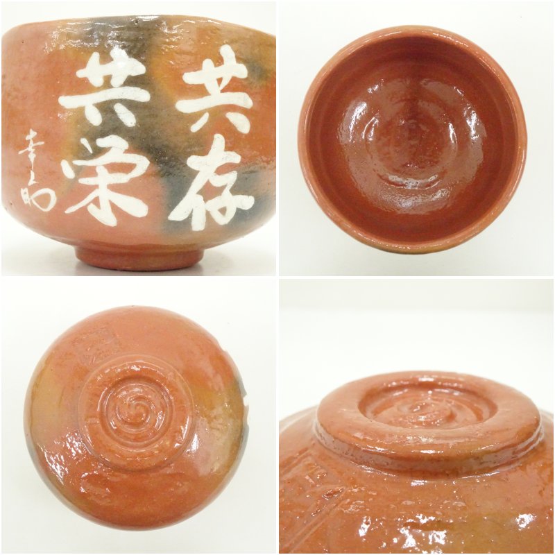 楽入窯造 松下幸之助 座右の銘「共存共栄」 赤楽茶碗(共箱) [13-250912c-052a]