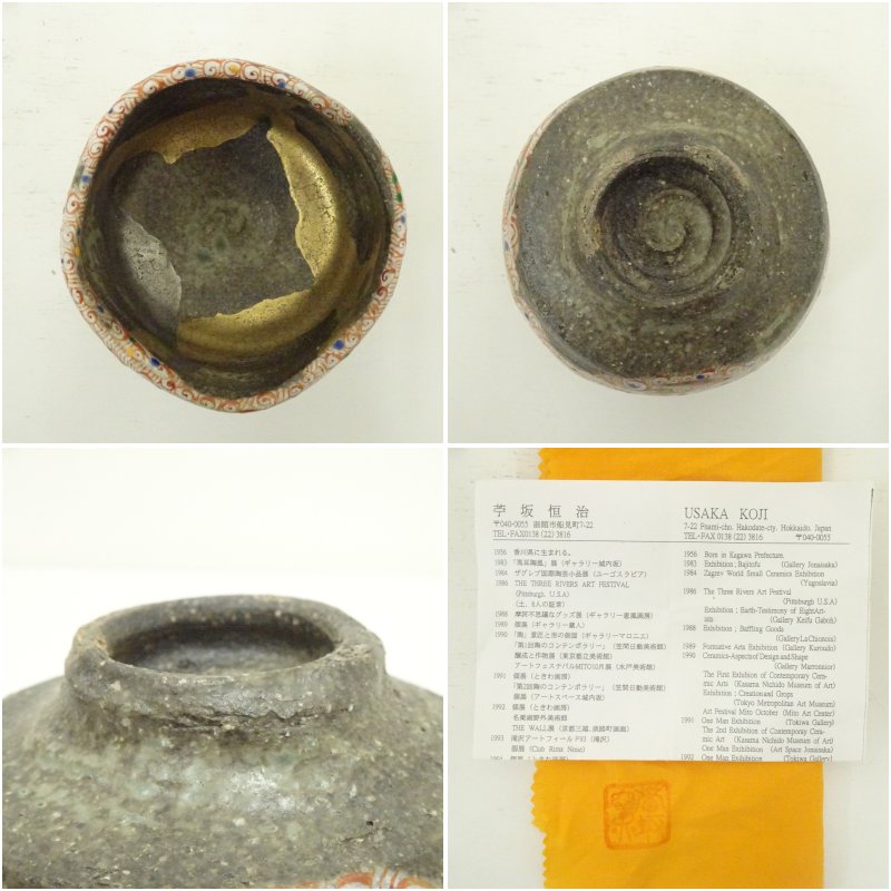 苧坂恒治造 赤絵彩茶碗(共箱) [13-250609c-074a]