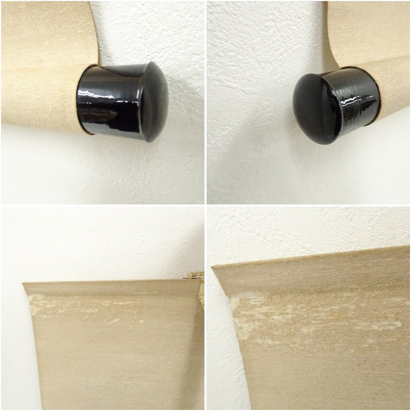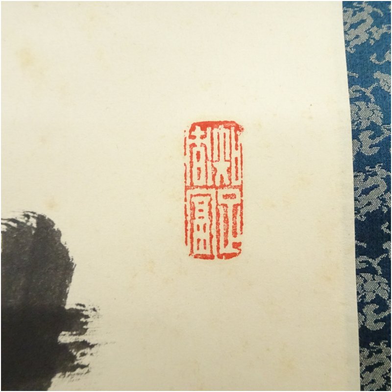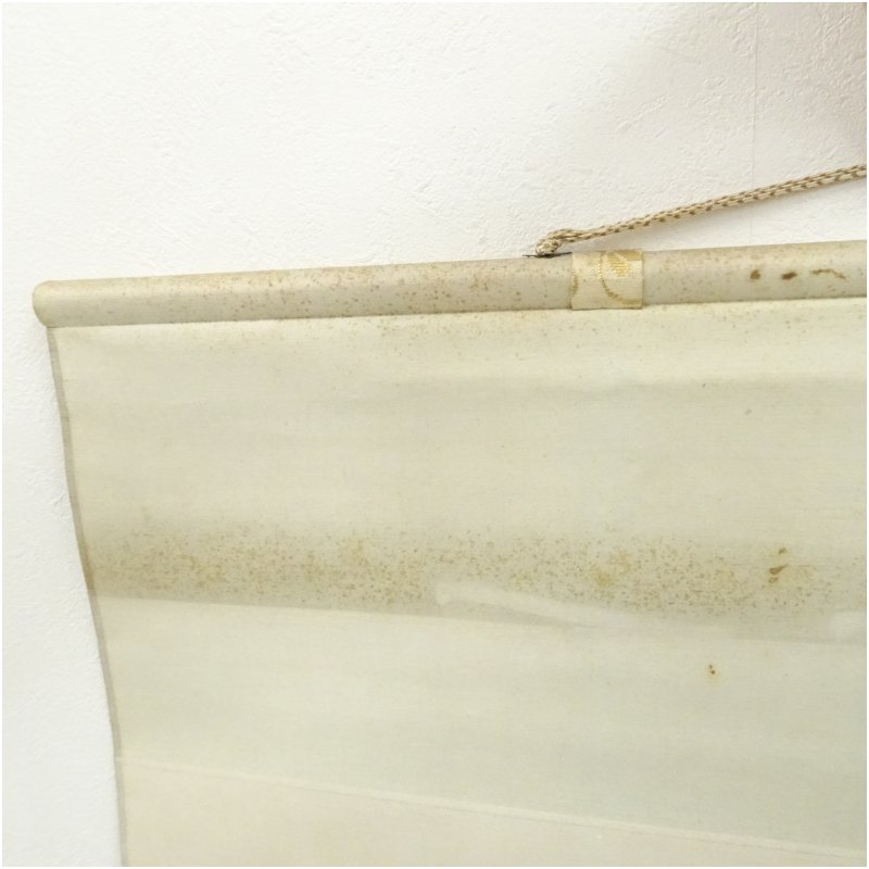 表具:表面八双付近に剥がれがあります。裏面全体に薄いシミがあり、特に上部に濃いシミがあります。