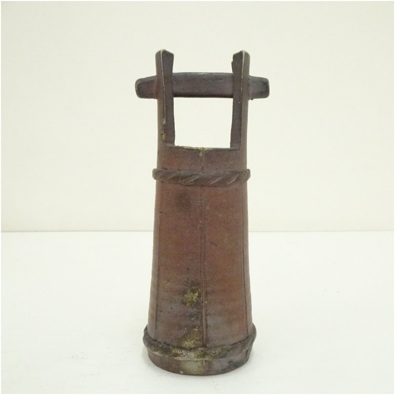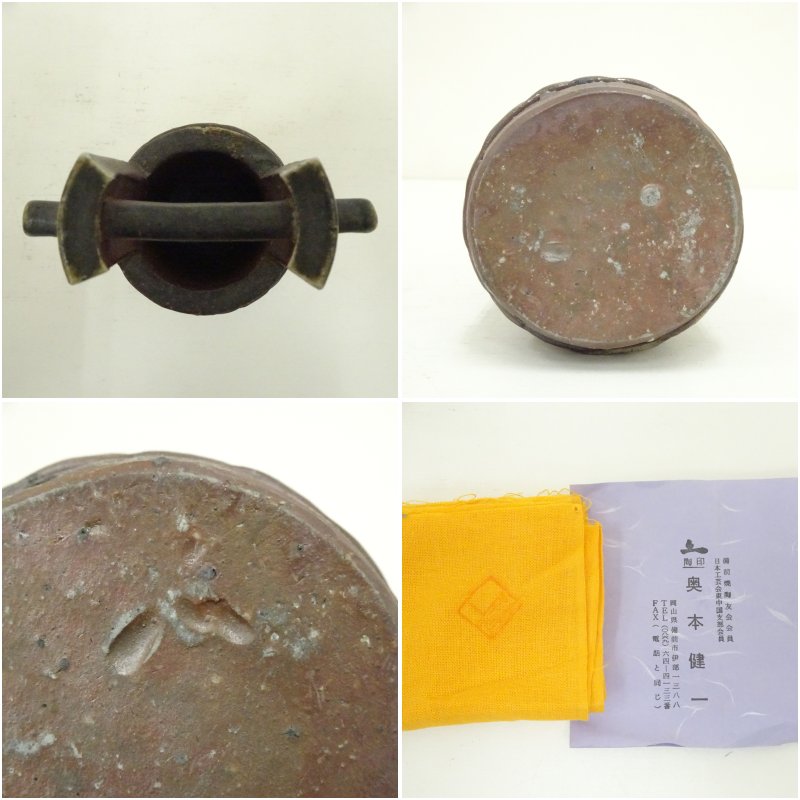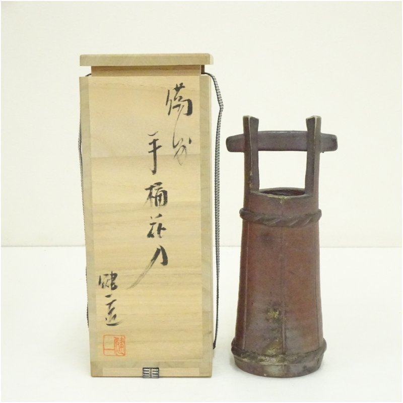 備前焼 奥本健一造 手桶花入(共箱) [13-250609c-077a]