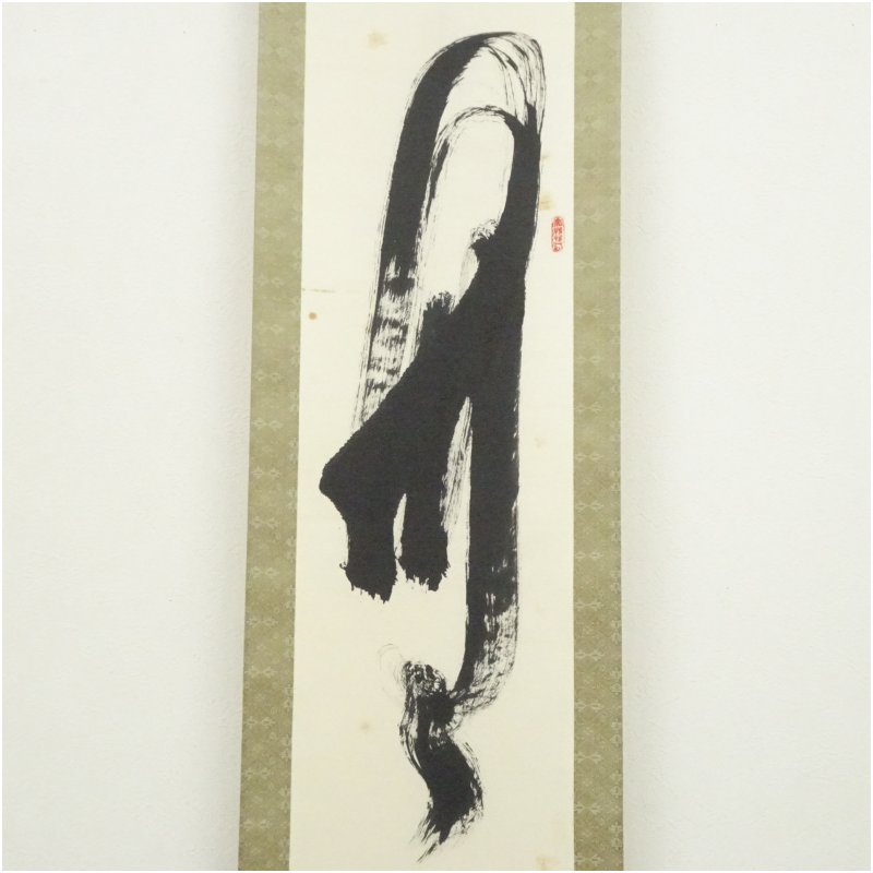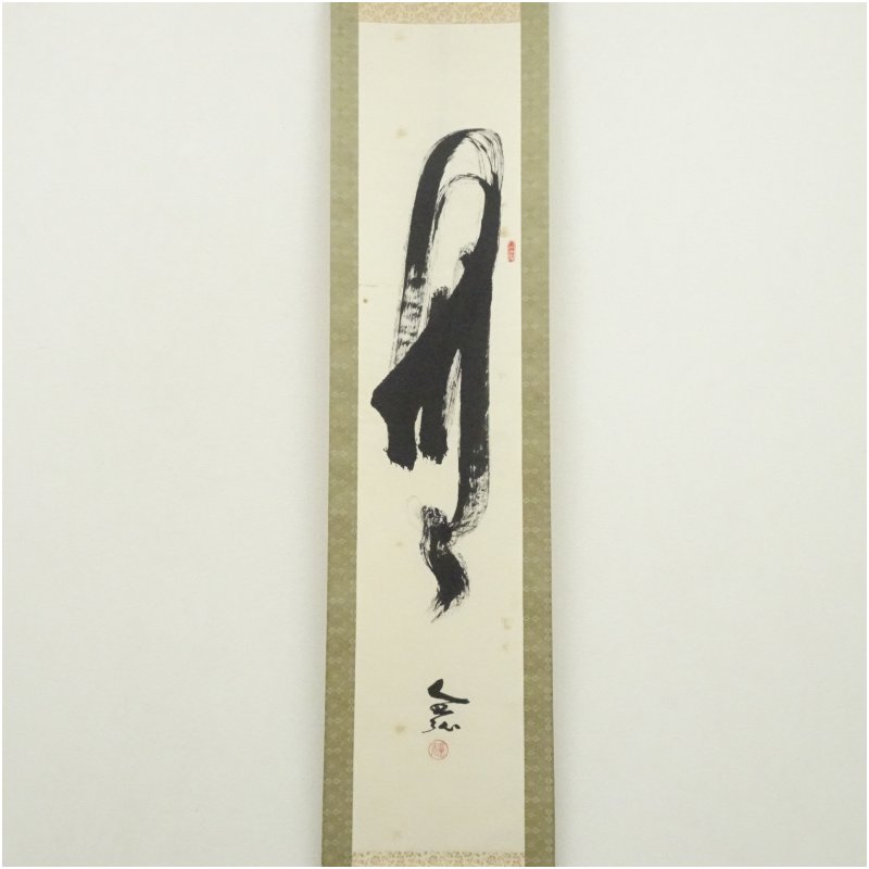 高野山 草繁全弘筆 「無」一字 肉筆紙本掛軸(共箱) [13-250916c-020a]
