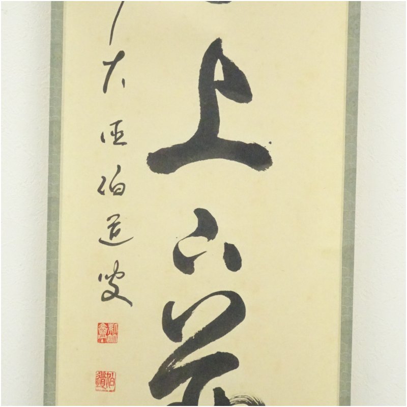 前大徳 平兮伯道筆 「竹有上下節」一行書 肉筆紙本掛軸(共箱)