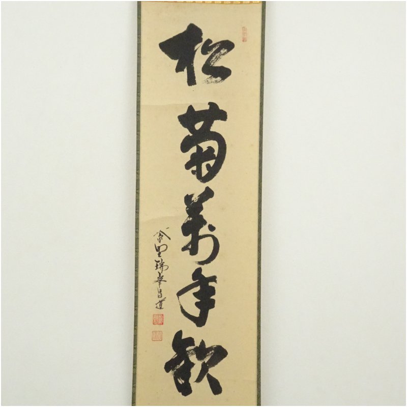大徳寺 前田昌道筆 「松菊萬年歓」一行書 肉筆紙本掛軸(共箱)
