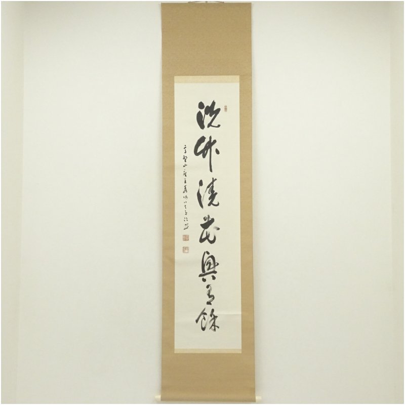 高野山 高峰秀海筆 七字一行書 肉筆紙本掛軸(保護箱) [14-250918c-001a]