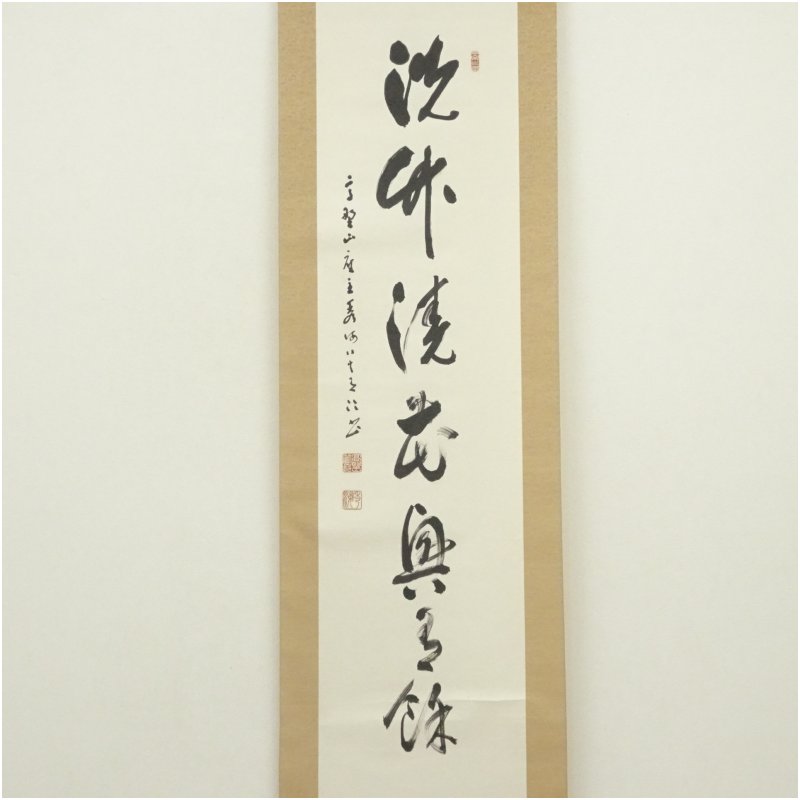 高野山 高峰秀海筆 七字一行書 肉筆紙本掛軸(保護箱)