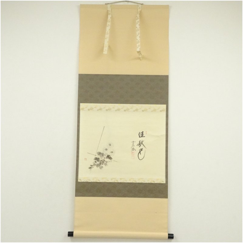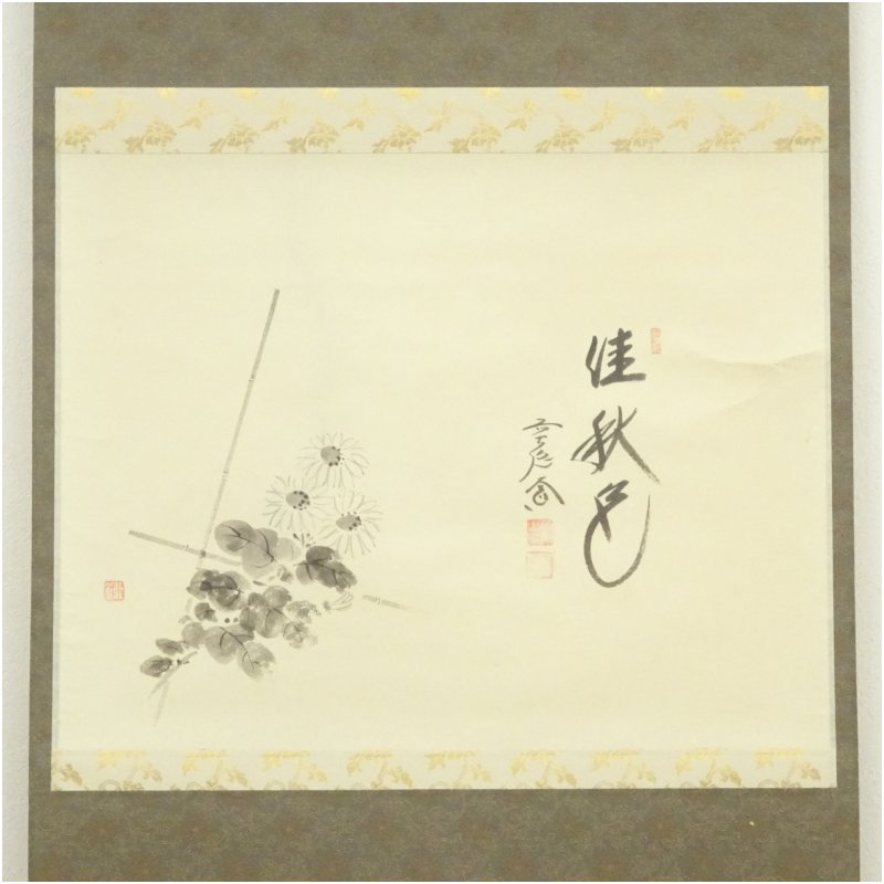 前大徳 西垣大道筆 「佳秋色」花画賛 肉筆紙本掛軸(共箱) [14-250918c-003a]