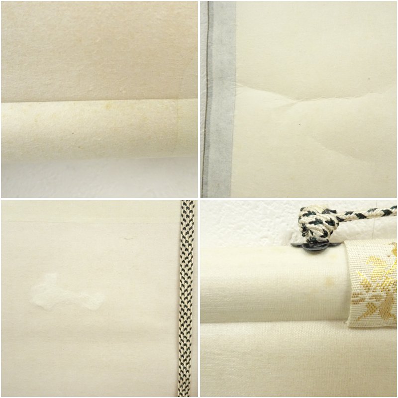 表具:表面に2ヶ所薄いシミがあります。裏面上下部に薄いシミがあります。上部に補修跡があります。