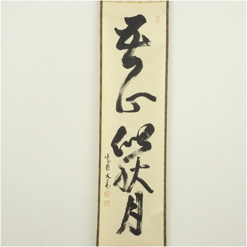大徳寺 立花大亀筆 「吾心似秋月」一行書 肉筆紙本掛軸(共箱)