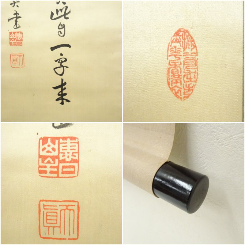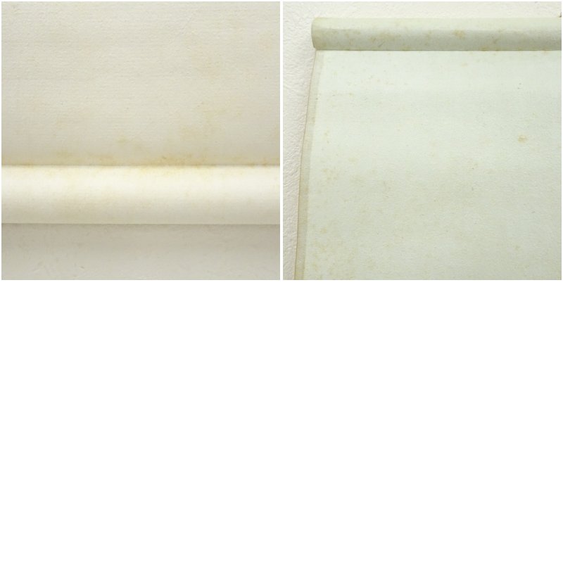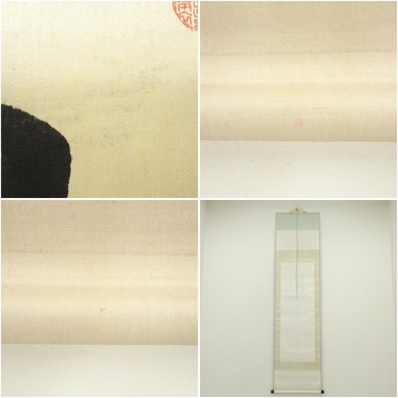 本紙、表具裏面、軸棒にところどころ小さな薄いシミや汚れがあります。