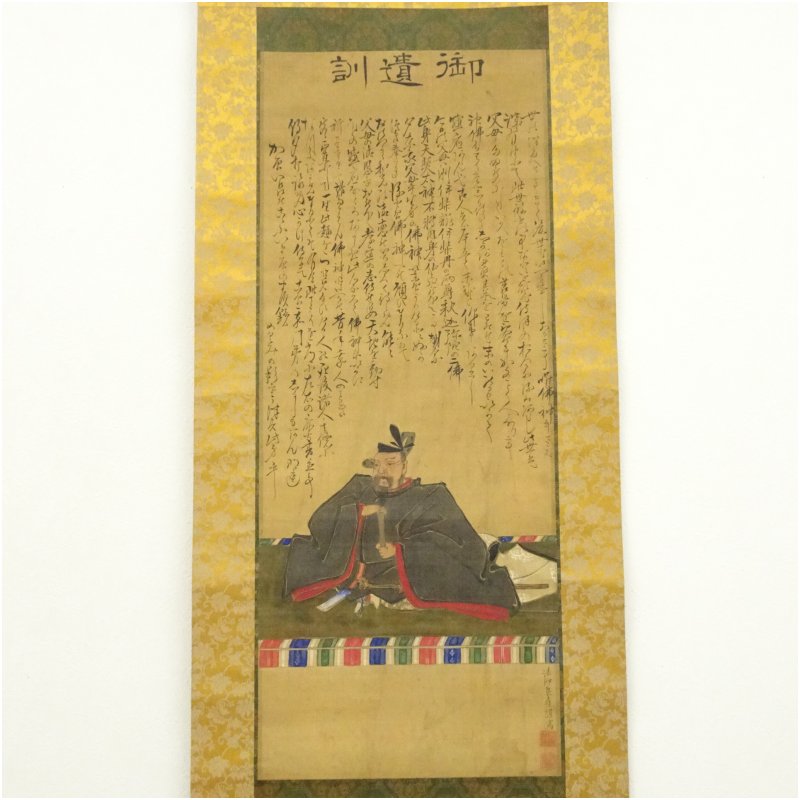 良堯筆 菅原道真遺訓 肉筆絹本掛軸(箱付)