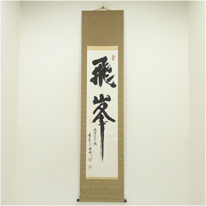 比叡山 大阿闍梨 酒井雄哉筆 「飛峯」一行書 肉筆紙本掛軸 [14-250918c-041a]