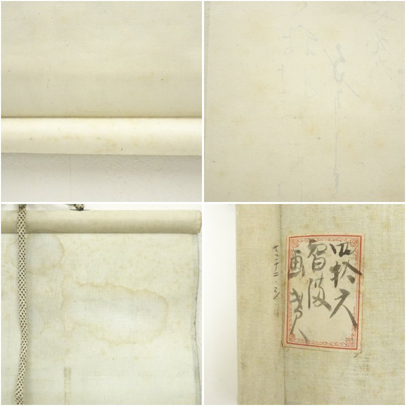 本紙と表具両面に、全体的に経年によるシミがあります。