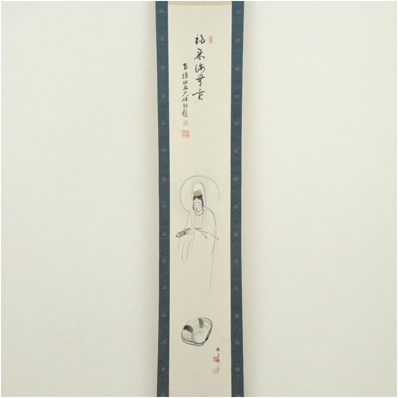 南禅寺 大休義勇筆 「福寿海無量」松村梅叟筆 蛤観音画賛 肉筆紙本掛軸(共箱) [14-250918c-053a]