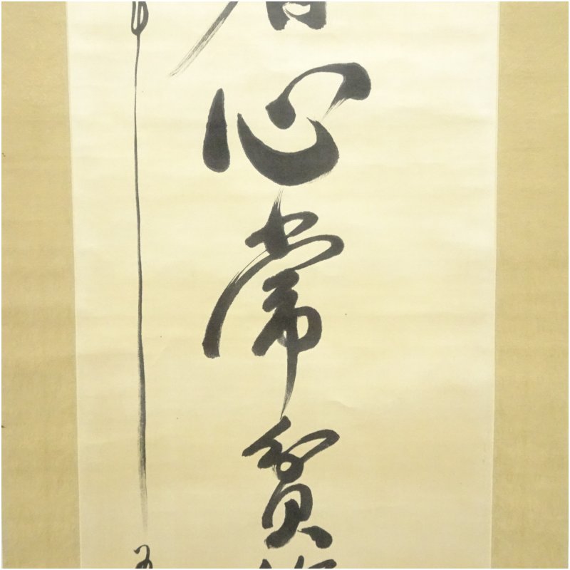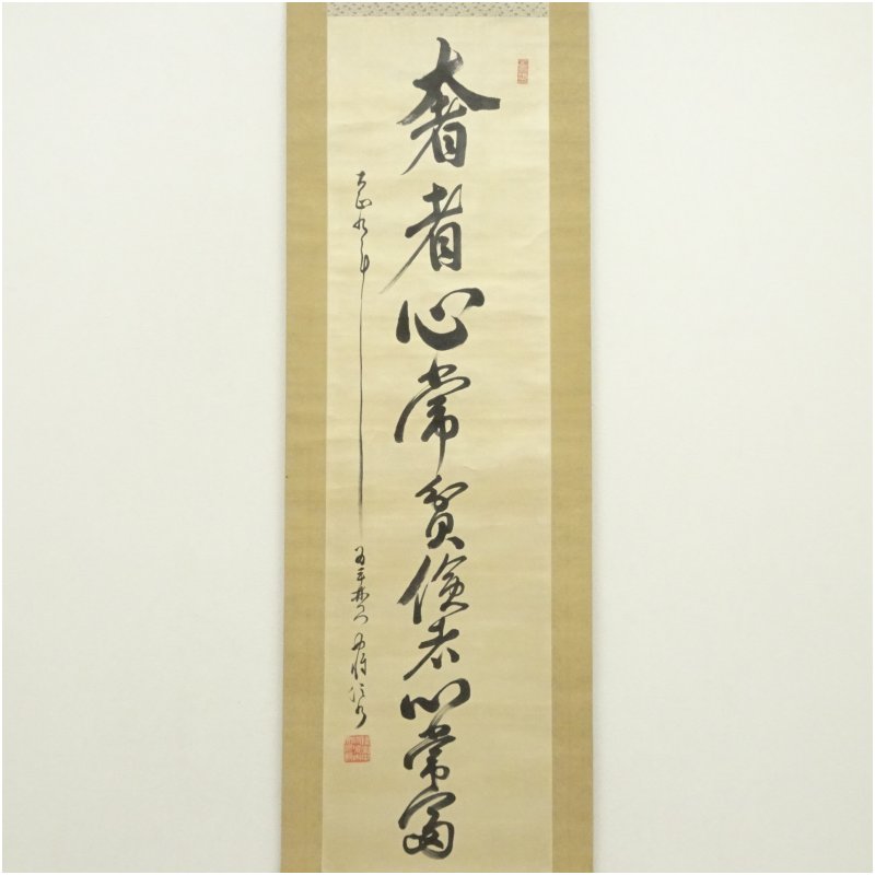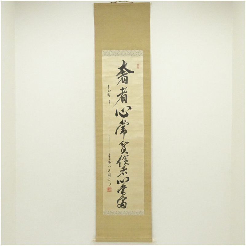 陸軍中将 堀内文次郎筆 「奢者心常貧倹者心常富」 肉筆絹本掛軸 [14-250918c-058a]