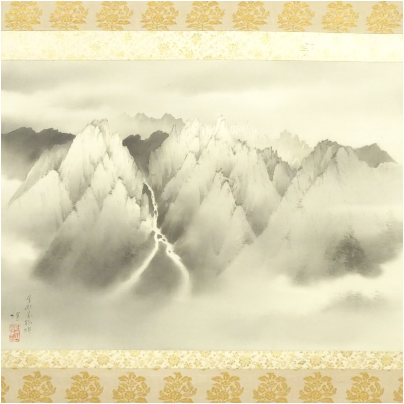 堅山担筆 金剛萬物相 山水 肉筆絹本掛軸(共箱) [14-250918c-060a]