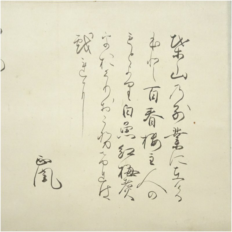 表具:表面上部に折れが数本あり、若干の薄いシミがあります。裏面上部にヤケがあります。