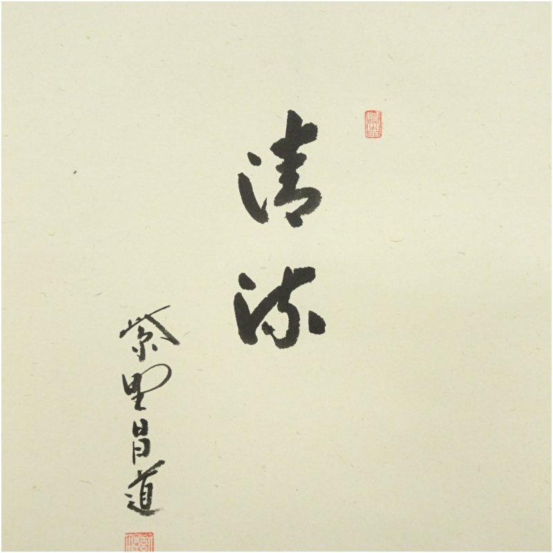 大徳寺 前田昌道筆 「清流」鮎画賛 肉筆紙本掛軸(共箱)