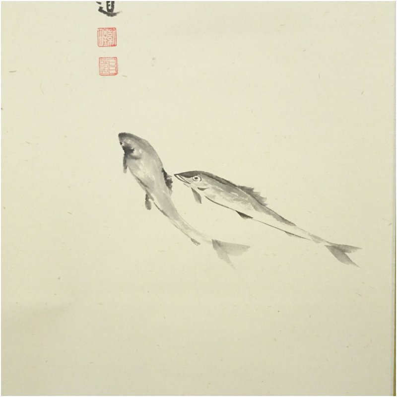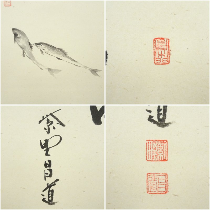 大徳寺 前田昌道筆 「清流」鮎画賛 肉筆紙本掛軸(共箱) [14-250919c-010a]