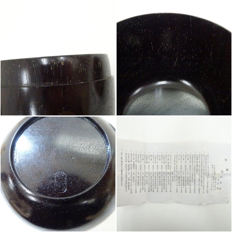 福田芳朗造 如心斎好 紫檀木竹象嵌つぼつぼ大棗(共箱) [13-250610c-024a]