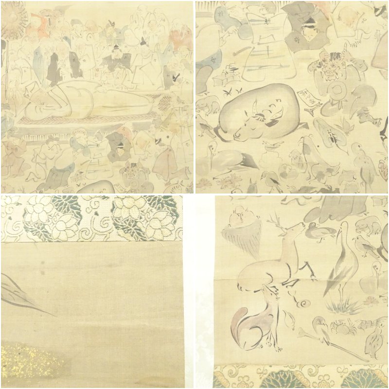 江戸後期 芭蕉涅槃図 肉筆絹本掛軸(近藤金羅識箱・二重箱) [14-250919c-023a]