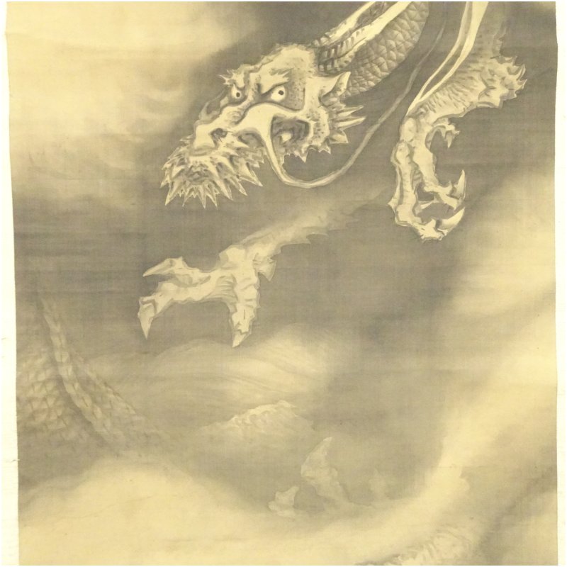 江戸後期 張月樵筆 雲竜図 肉筆絹本掛軸 [14-250919c-031a]