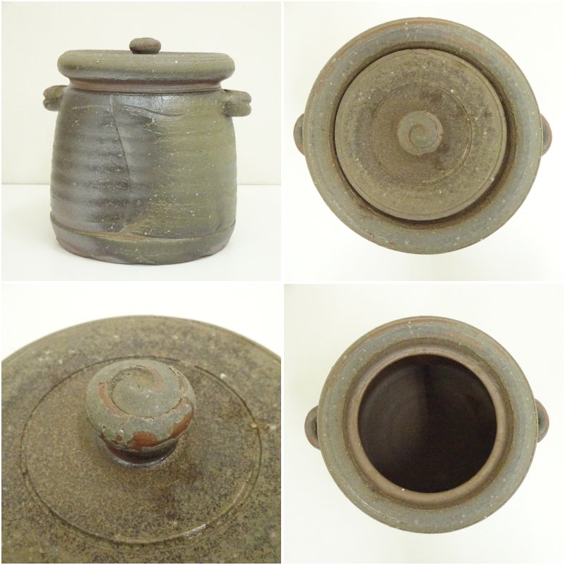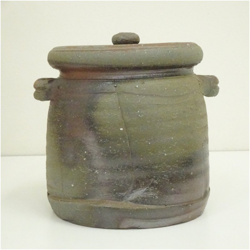 備前焼 伊勢崎競造 耳付水指(共箱) [13-250516c-024a]