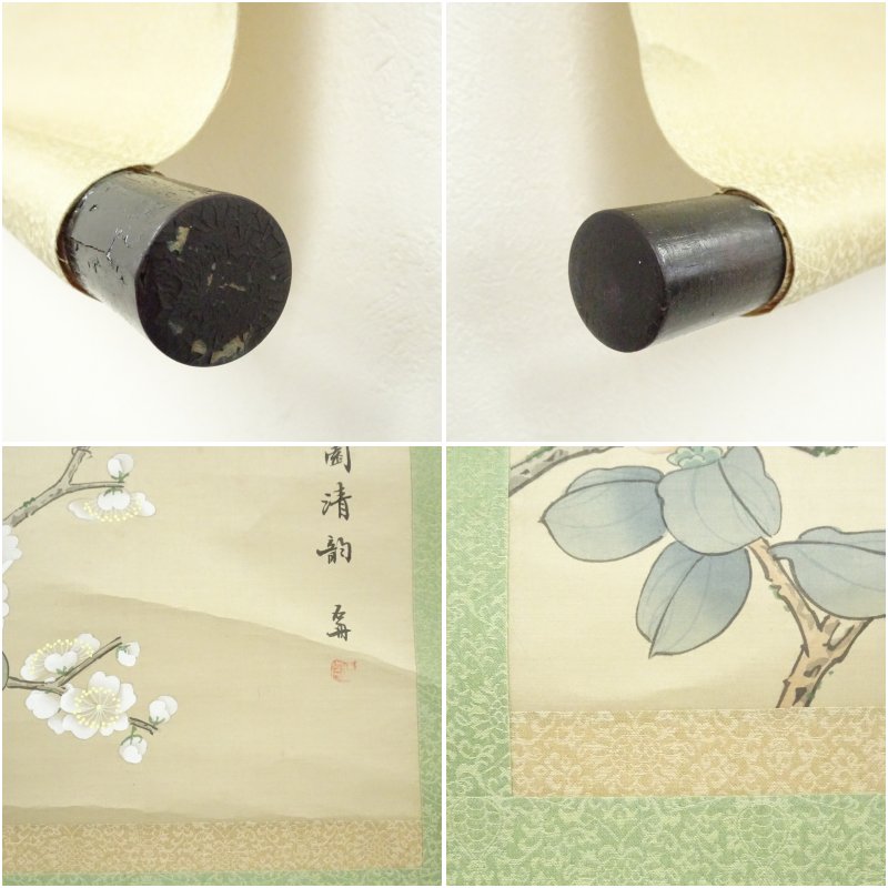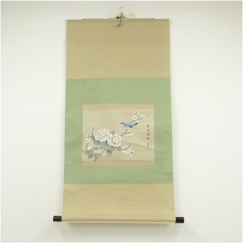 石舟筆 花鳥図 肉筆絹本掛軸(箱付) [01-250919c-046a]